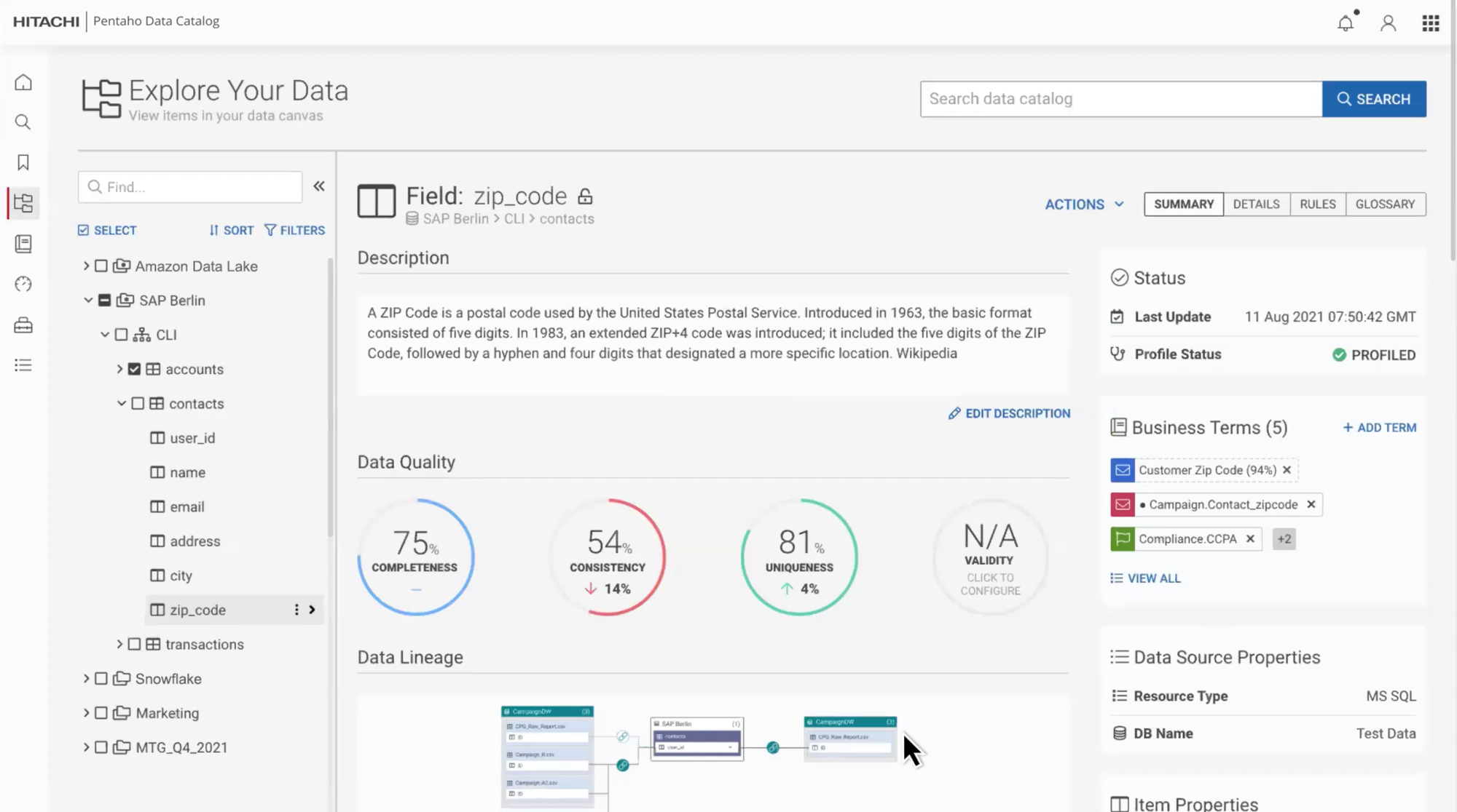 Pentaho inclut des briques de qualité de données (profiling, nettoyage, normalisation), mais celles-ci restent limitées par rapport à des plateformes spécialisées. La force principale de l’outil réside davantage dans l’intégration et l’analytique que dans la surveillance continue de la qualité.