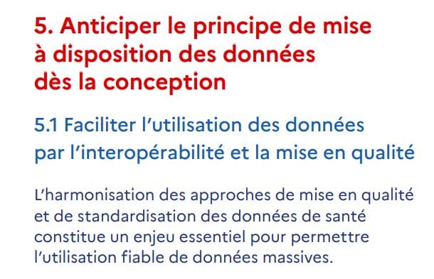 Dans son axe 2, chapitre 5.1 : Faciliter l'utilisation des données par l'interop et la mise en qualité !